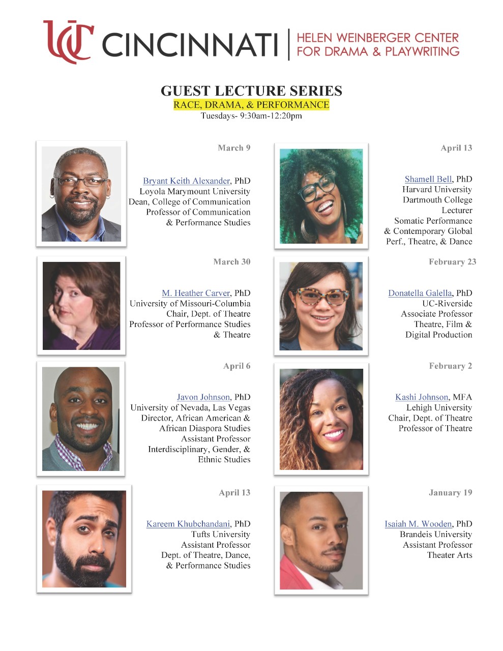Co-sponsored by the Black Acting Methods Studio, CCM (Acting), the Cincinnati Black Theatre Company (CBTC), the Department of English and Comparative Literature, and The School for Creative and Performing Arts (SCPA).