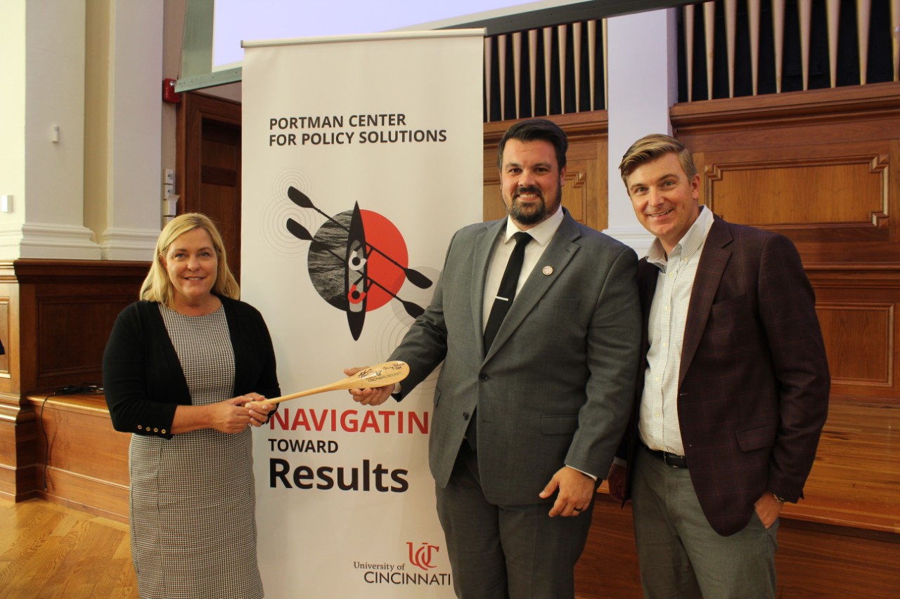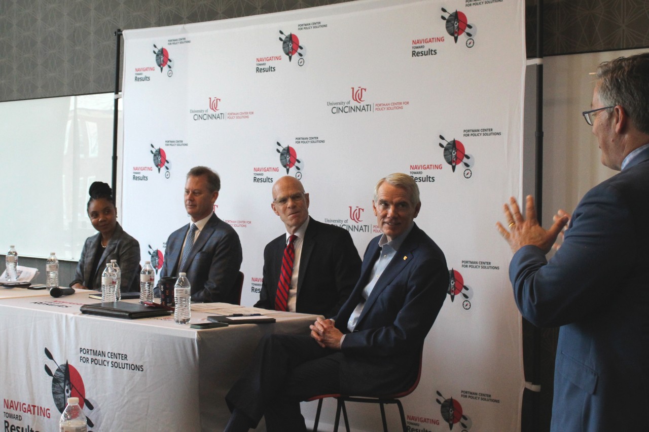 Inaugural Portman Center Symposium focused on Artificial Intelligence (AI) convened local and national leaders in the policy space, including Dr. Daniel Ragsdale (Deputy Assistant National Cyber Director, White House), Sheryl Long (Cincinnati City Manager), Chip Pickering (CEO, Incompas), Rob Portman (former U.S. Senator representing Ohio), and Dr. Richard J. Harknett (Director, School of Public and International Affairs and Director, Center for Cyber Strategy and Policy, University of Cincinnati).