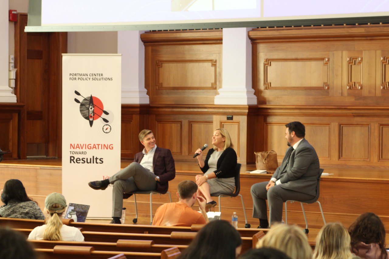 The Portman Center Public Leadership Awards honor leaders committed to bipartisanship, civility, and problem-solving. Event proceeds support the Portman Center program for students pursuing public policy internships, co-ops, and experiences, with the funds directly funding stipends, travel, and career development workshops.