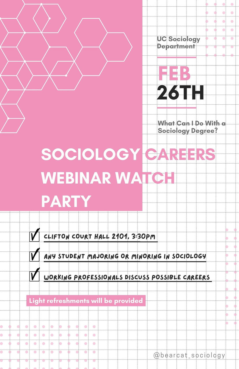 Join us for a watch party to learn about all of the career paths open to students majoring and minoring in Sociology! Light snacks will be provided.