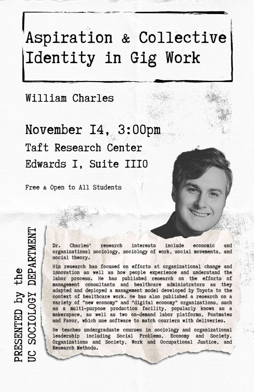 Dr. Charles' research interests include economic and organizational sociology, sociology of work, social movements, and social theory.